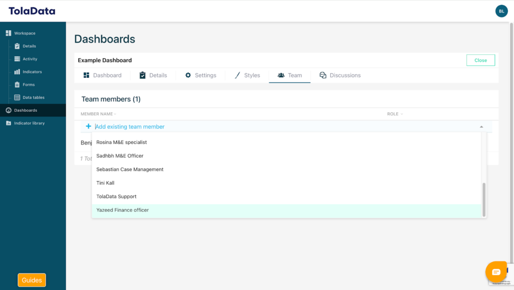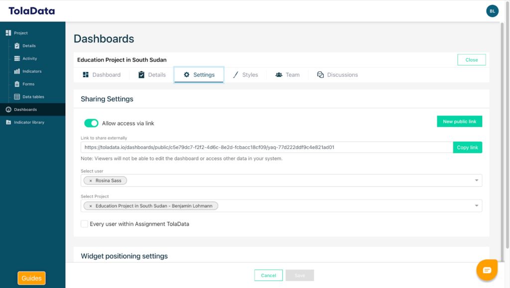 You can also share your dashboard TolaData internally or work on it collaboratively with other users.